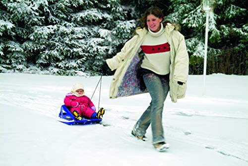 Der Alpenbambino ist ein Babybob der Marke Alpengaudi, wiegt 1,6kg, ist bis zu 20kg belastbar und eignet sich besonders für Familien mit einem Baby oder Kleinkind. Dieses ist in dem blauen Bob durch den roten Gurt sowie die hohen Seitenwände gesichert und kann durch das lange Zugseil gezogen werden (Das Baby sollte immer beaufsichtigt werden und nicht alleine fahren dürfen).